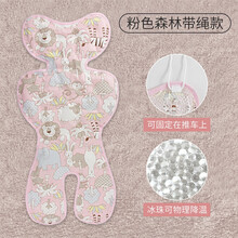 婴儿凉席 透气 儿童宝宝安全座椅夏季冰珠凉垫婴儿推车凉席通用坐垫餐椅冰垫车垫 粉色森林(带绳款) 其它