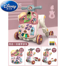 迪士尼(Disney)宝宝学步车手推车玩具婴儿助步学走路五合一多功能防o型腿防侧翻 4合1模式多功能学步车粉色【电池套餐】