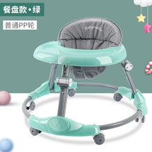 学步车防侧翻可推可坐助步车防o型腿婴儿多功能手推车宝宝学行车起步车 菲尼绿餐盘款 向普通轮