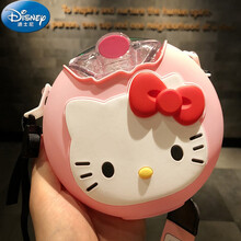 【迪士尼旗舰官方店】适合小朋友的甜甜圈水杯学生夏季天儿童带吸管杯子少女幼儿园便捷斜挎水壶网红 KT猫粉色+斜挎背带 380ML