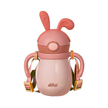 迪乐贝尔(Diller)儿童保温杯带吸管奶嘴两用316不锈钢带手柄宝宝杯幼儿园便携水杯 粉色260ML(背带+吸嘴)