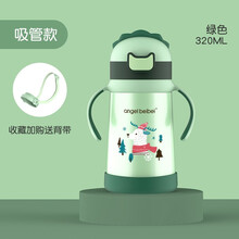 RREIAO韦奥儿童保温杯316不锈钢带吸管大容量户外便携杯小学生宝宝喝水杯幼儿饮水杯子 320ml绿色【吸管盖+背带】