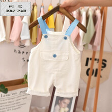 儿童背带裤夏季韩版洋气裤子 男童背带裤2021年新款夏装韩版宝宝短裤洋气潮小童吊带裤儿童裤子 白色 8857蓝色丝带短裤 80码(参考身高70-80cm)