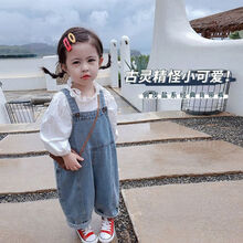 童装新款2020秋季新款童装女童休闲裤子春装儿童宝宝牛仔背带裤潮 牛仔背带裤 80 建议身高70-84cm