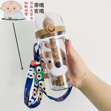 【京选好货】抖音卡通吸管水杯小鸭子手动搅拌杯ins男女学生可爱情侣随手杯子幼儿园小朋友批发1 500ml搅拌杯 小棕熊+可调节背带 单杯子+杯刷+吸管刷