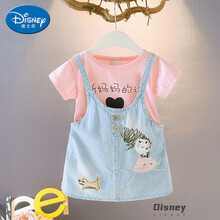 迪士尼 宝宝牛仔背带裤2021新款夏装公主裙女孩子可爱连衣裙婴幼儿短裙子 粉色 小女孩背带裙 73cm