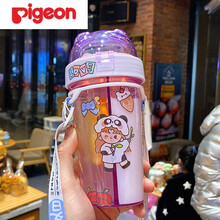 【特价】贝亲高颜值网红ins双饮杯带吸管可爱少女学生水杯子一杯两用便携简约幼儿园小孩子喝水用的水杯 紫色420ml 配杯刷+背带+贴纸