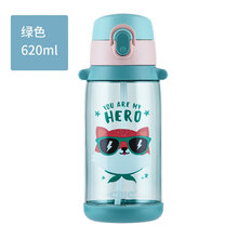 儿童水杯幼儿园宝宝可爱卡通防摔把手背带便携学生水壶吸管杯 XL-1932绿色背带款620ml