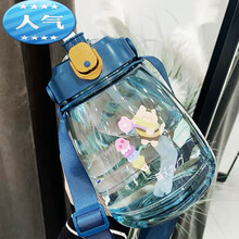 儿童夏天喝水杯水杯女超大容量1000ml带吸管瓶新款潮网红壶便携可爱塑料杯子幼儿园上 湛蓝色1000ml送贴纸(款式随机)+吸管+背带