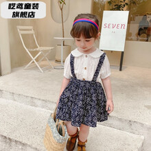 女童夏装套装女孩洋气短袖2021新款儿童夏季网红背带裙宝宝两件套 白色 80