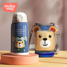 优仅ALL-JOINT 儿童保温杯大容量不锈钢316便携带吸管保温杯男 女带背带+杯套便携户外幼儿园 飞行熊(316不锈钢内胆带杯套)