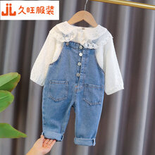 女童秋季套装20新款韩版洋气秋冬网红儿童装宝宝秋装牛仔背带裤 蕾丝衬衫+背带裤 80cm