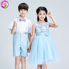 中二班六一儿童节演出服夏季男童短袖背带裤绅士礼服套装幼儿园小学生班级大合唱表演服装