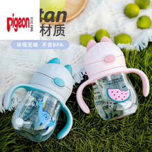 贝亲同款儿童吸管杯学饮杯防漏水壶男女宝宝幼儿园防摔杯子小学生水杯便携 萌猫蓝色手把+背带320ml