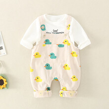 南极人0一3岁轻奢品牌网红2021新款婴儿春装背带裤套装男女宝宝可爱超萌衣服幼儿连体衣两件套 绿色 66cm