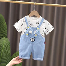 迪士尼(Disney)男童短袖背带裤套装2021年新款小童夏装1一3岁洋气宝宝儿童衣服潮 白色KB 小熊牛仔背带套装 80码