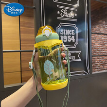 迪士尼(Disney)儿童水杯夏季吸管男孩女童小学生幼儿园便携防摔带背带塑料杯子 黄色森林鹿600ML带杯刷+带吸管刷