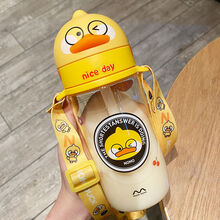 特百惠商场同款小黄鸭儿童水杯上学专用背带式塑料杯子女可爱幼儿园吸管杯耐高温 单鸭杯子430ml(防呛水吸管) 杯子加原装背带