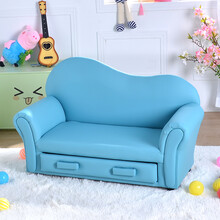 dgbaobei儿童沙发 储物功能宝宝沙发椅 幼儿沙发 可爱弯背带抽双人小沙发 幼教用品 蓝色双人弯背带抽沙发