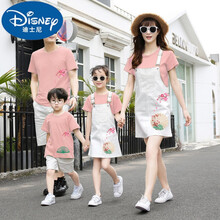 迪士尼品牌高端新品 中国风亲子装夏装一家三口四口母子母女背带裙子新款韩版套装炸街 粉色套装 男童140