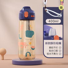 私家良品 儿童水杯带吸管杯成人孕妇产妇ppsu运动水杯女幼儿园小学生水杯壶牛奶杯子带刻度夏季 鸢尾蓝 400ml+背带