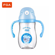 富光FGA 儿童塑料杯带吸管宝宝学饮杯Tritan材质户外大容量防摔水壶带手柄背带夏季儿童杯子 480ml 蓝色