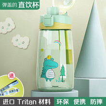 TOL儿童塑料吸管杯夏季小学生水瓶男女可爱防摔便携宝宝直饮水杯幼儿园恐龙兔子图案Tritan环保杯子 直饮弹盖杯-青介绿(配背带绳)500ml