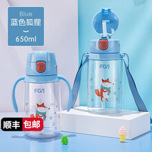 富光儿童吸管杯带手柄防摔防漏塑料水杯子幼儿园便携学生背带水杯 蓝色650ml