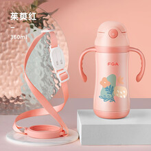 富光FGA儿童保温杯宝宝吸管杯学饮杯316不锈钢带把手喝水壶手柄背带两用水杯子 粉色 360ml