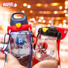迪士尼(Disney)儿童水杯吸管防摔宝宝水壶便携夏季幼儿园Tritan水杯带背带 美国队长
