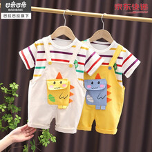 巴拉巴拉旗下Badibadi 男童洋气短袖背带裤套装宝宝薄款夏装婴儿童纯棉韩版衣服小童童装 黄色 90
