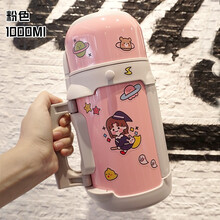壹滴滴家用大容量保温壶宝宝婴儿外出保温瓶冲奶粉便携保温瓶户外暖水壶1L女学生简约小型宿舍用热水瓶 粉色1000ML+带贴纸背带杯刷
