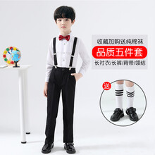 波西咪奇儿童背带裤演出服男女童幼儿园小主持人礼服小学生合唱服学生朗诵合唱表演服装 白长衬衫+黑长裤 男款 150