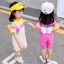 童装女童套装宝宝夏装儿童两件套洋气时髦潮小童夏季背带裤网红小孩子夏天衣服短袖短裤 玫红色 110码建议3-4岁