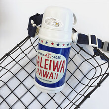 日本(HALEIWA)保温杯直饮不锈钢宝宝儿童幼儿园小学生小孩水杯大容量真空保冷背带 经典宝蓝色