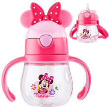 迪士尼(Disney)宝宝学饮杯吸管杯 儿童水杯子婴儿防漏背带手柄两用水壶 粉色米妮330ml
