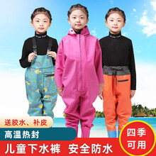 梦多福 儿童下水裤 幼儿园男女童玩沙服儿童玩水服捞鱼裤儿童连体下水裤小孩雨裤沙滩防水雨裤 恐龙背带半身裤 27码