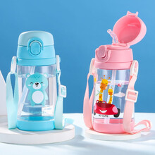 光一 儿童水杯夏季吸管杯上学专用男女孩小学生幼儿园宝宝可爱夏天防摔喝水杯 粉色-400ML配背带