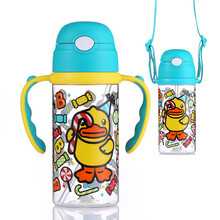 B.DUCK 小黄鸭儿童水杯 tritan背带手柄两用宝宝吸管杯 夏季冷水杯 380ml(绿盖)6500