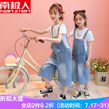 南极人品牌专卖 女童牛仔背带裤夏装套装2021新款洋气网红儿童阔腿裤大童裤子夏季 图片色 110