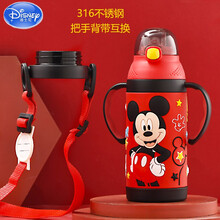迪士尼(Disney)水杯儿童保温杯吸管杯学饮杯婴儿幼儿把手背带316钢 保温杯 320ML包胶款红色(直通吸嘴)