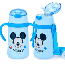 迪士尼(Disney)儿童保温杯带吸管背带家用幼儿喝水杯宝宝吸管杯子婴儿学饮杯 3327米奇蓝【400毫升-带重力球】