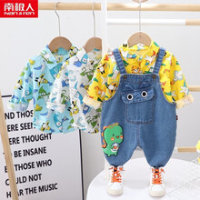 南极人童装男童背带裤套装秋装1-2-3一周岁婴儿幼儿童衣服男宝宝可爱小恐龙小男孩春秋季两件套小孩子的 黄色 100