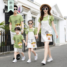 ℘唯坤轻奢宝宝小孩子穿的炸街亲子装一家三口四口夏2021新款潮母子母女背带裙套装洋气网红 牛油果绿套装 女童160