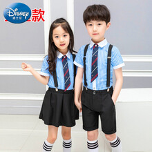 女童(黑短裙+蓝条衬衫+领带+背带) 110cm