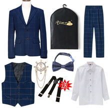 衣诺坊 儿童小西装套装花童外套男孩礼服小孩大童韩版宝宝儿童西服休闲春秋 藏青组合2(西服+西裤+马甲+衬衫+领结+背带) 140cm