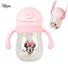 迪士尼(Disney)吸管杯PPSU婴儿水杯儿童刻度学饮杯重力球喝水壶男女宝宝手柄训练饮水杯子 260ML粉色米妮把手背带2用吸管杯