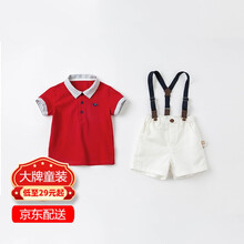 davebella戴维贝拉童装2021夏装新款男童套装小童宝宝T恤背带裤洋气两件套DB18112红色130cm