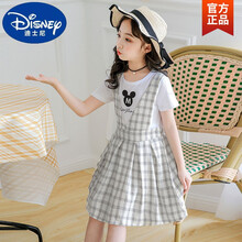 迪士尼(Disney)品牌童装 女童连衣裙夏装新款中大童背带裙小女孩裙子学生宝宝儿童假两件潮 米白色 150 (适合身高141-150)