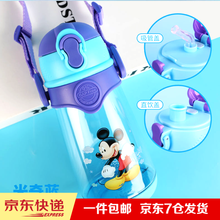 迪士尼(Disney)儿童水杯学生吸管杯夏季便携双盖直饮杯宝宝水壶儿童水瓶 蓝色米奇双盖【吸管盖+直饮盖+背带】
